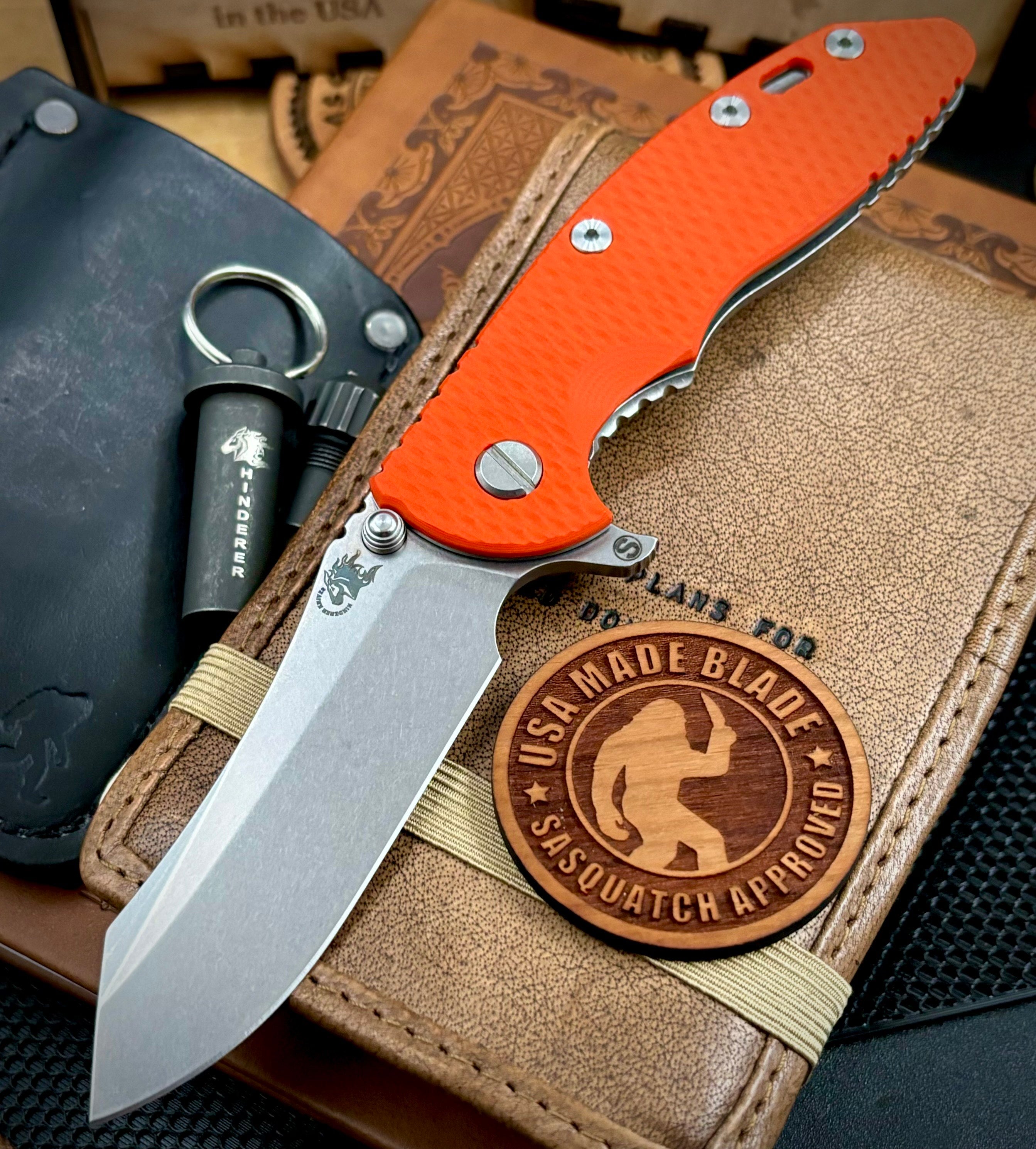 Hinderer XM-18 3.5" Skinny Skinner Stonewashed Ti Orange G10 Magnacut Stonewashed Blade