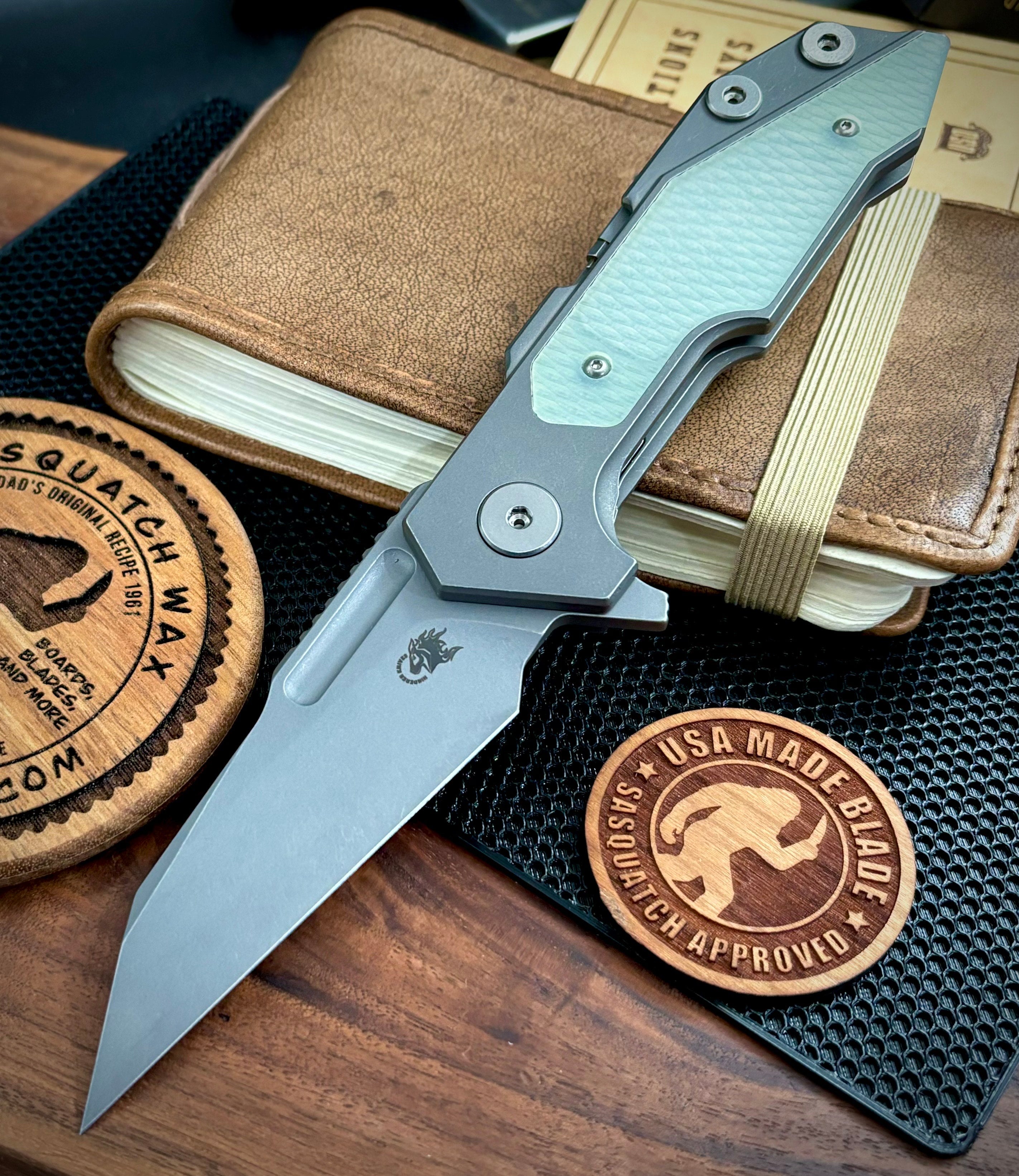 Hinderer Full Track Wharncliffe Working Finish Ti with Translucent Green G10 and Working Finish S45VN Blade